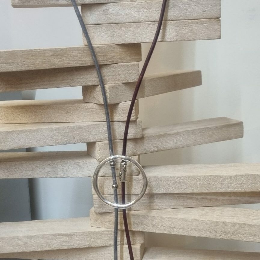 Collier sautoir femme composé de deux cordons de cuir rond 3 mm, un Violet tyrien vintage et un gris argenté