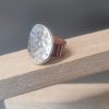 Bague femme en cuir plat 10mm Saumon rayé argent métallique et passant rond martelé en zamak argenté