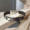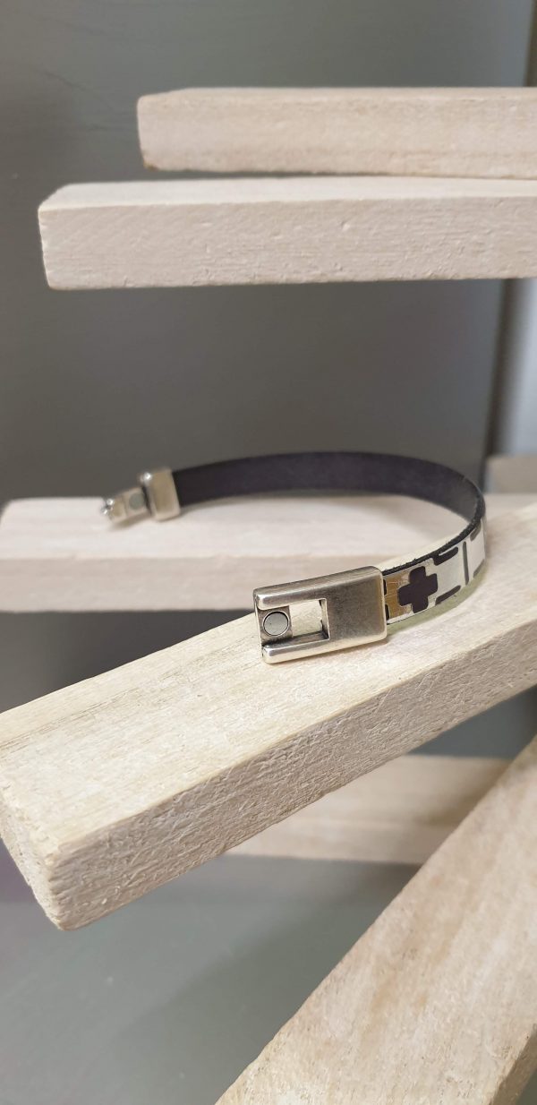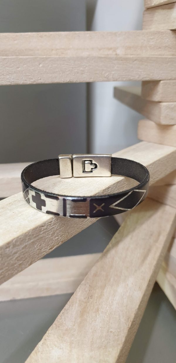 Bracelet femme composé d’un cuir motifs géométriques 10 mm Noir/Argenté