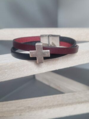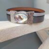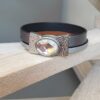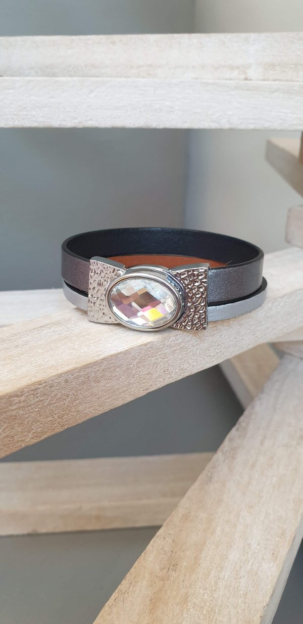 Bracelet femme 15mm composé d’un cuir plat 10mm métallique argenté et d’un cuir plat argenté 5mm